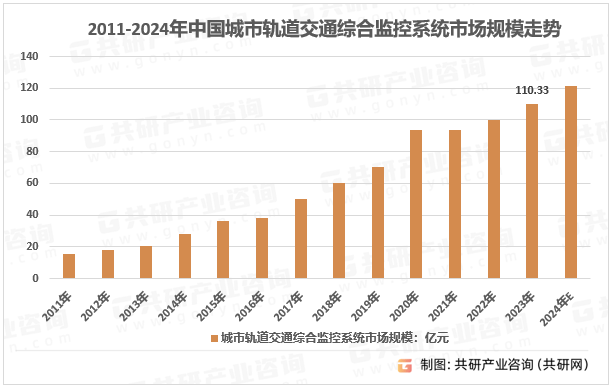 城市轨道交通综合监控系统是一个技术含量要求相当高的行业,中国本土企业已经在该领域具备较强的实力,目前综合监控系统已经完成了国家规定机电设备国产化率70%以上的总体目标,2022年中国城市轨道交通综合监控系统市场规模99.71亿元,2023年达110.33亿元。