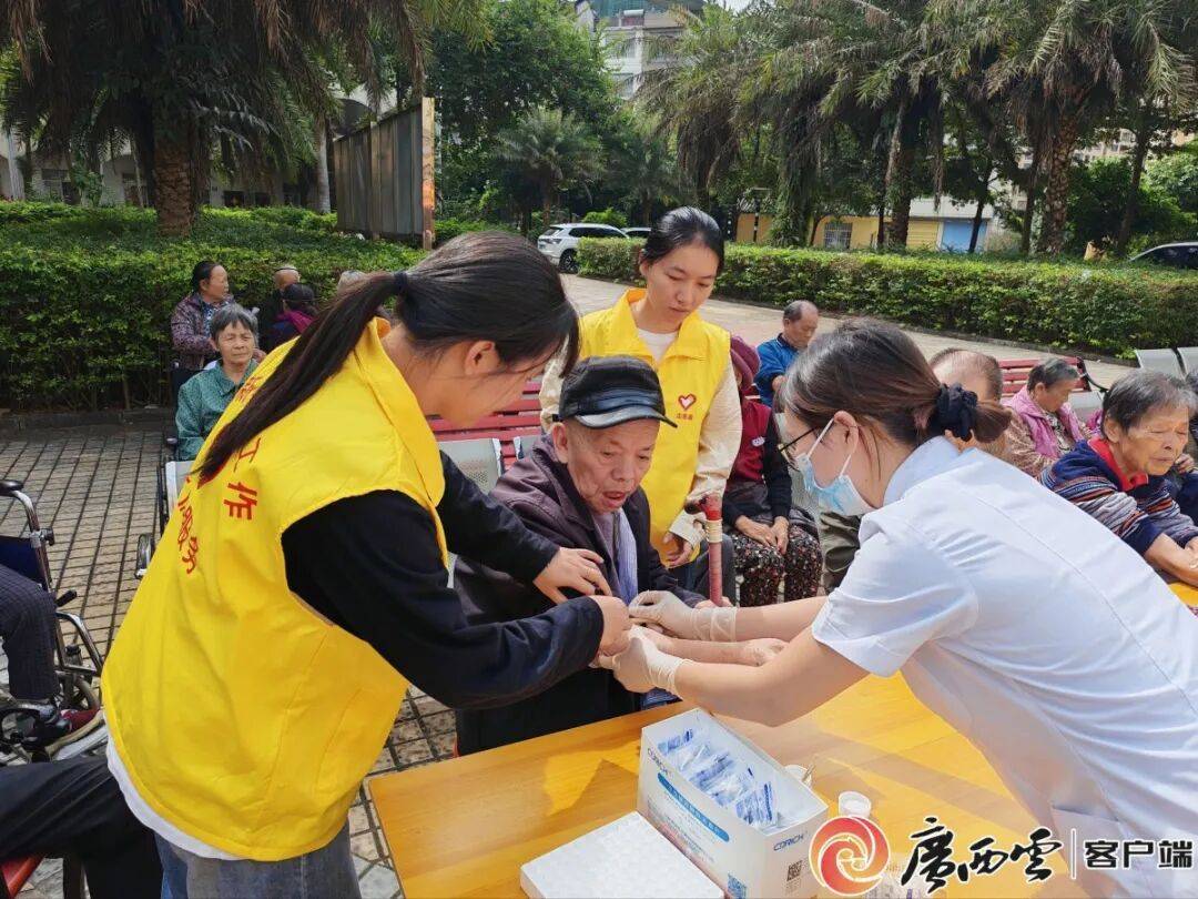 崇左市大新县委社会工作部开展助老活动,组织社工和志愿者协助开展义诊,让社区老人享受优质服务。崇左市委社会工作部 供图
