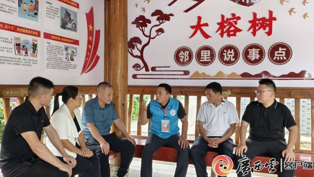 在桂林市平乐县张家镇榕津村“大榕树邻里说事点”,调解员组织开展矛盾纠纷调解,将邻里间的小摩擦、小纠纷化解在萌芽状态。桂林市委社会工作部 供图