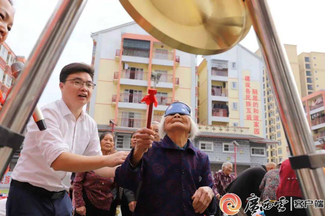 来宾市金秀瑶族自治县专业社工和志愿服务者开展“情暖重阳 爱在社区”志愿服务活动。来宾市委社会工作部 供图