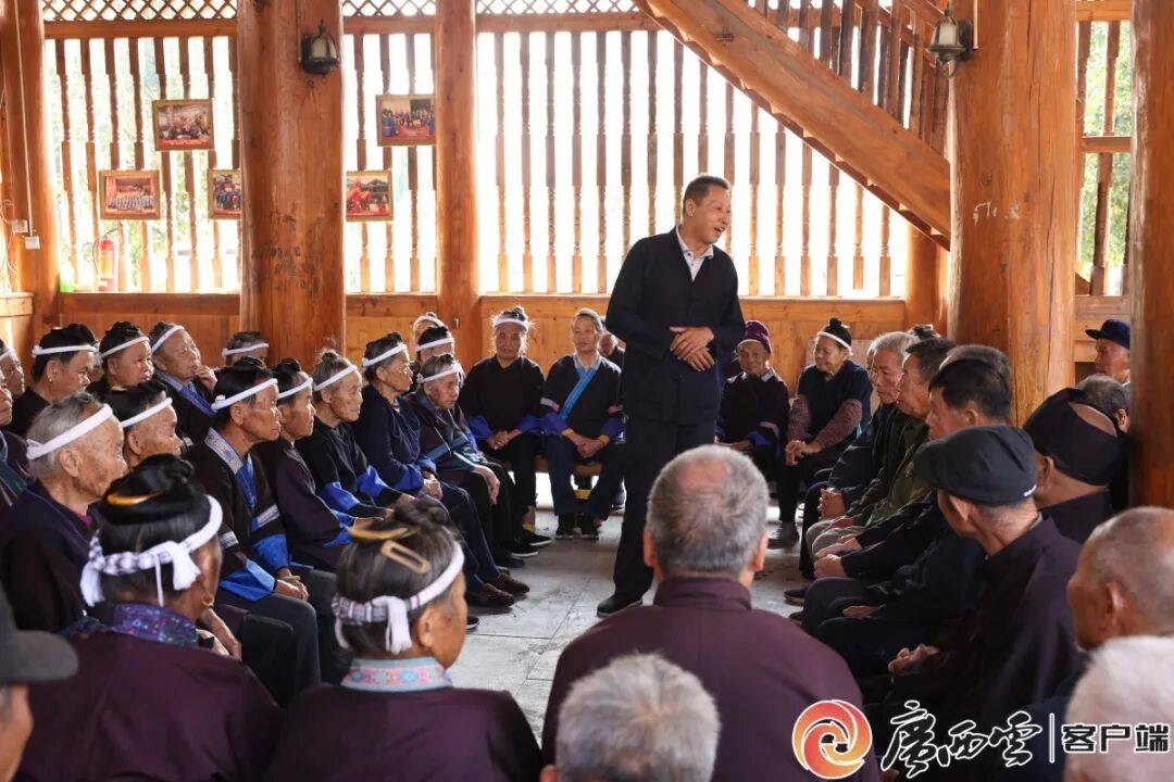 柳州市三江侗族自治县良口乡产口村鼓楼开展“村民说事”活动。柳州市委社会工作部 供图
