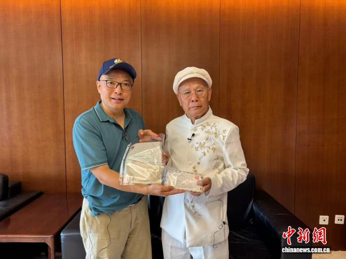 近日,华人收藏家、美国飞虎队研究院院长陈灿培(右)向中国人民大学家书博物馆捐赠飞虎队家书。 周昕 摄